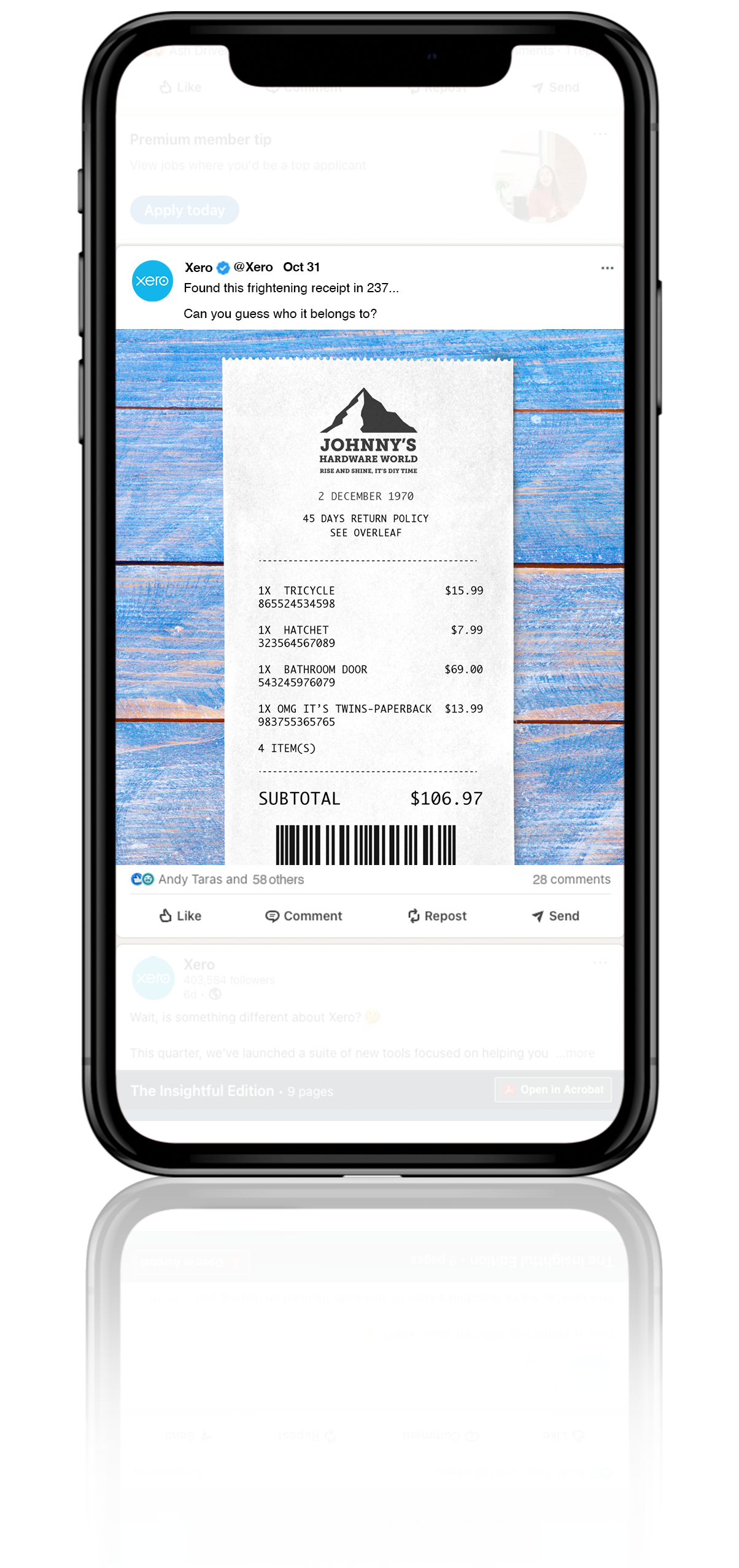 To celebrate halloween, we created a fun social campaign that used the thing that strikes terror into the hearts of accountants and bookkeepers - piles of paper receipts. Each receipt depicted a famous movie serial killer. We asked our community to work out who it was… and what was tax deductible.